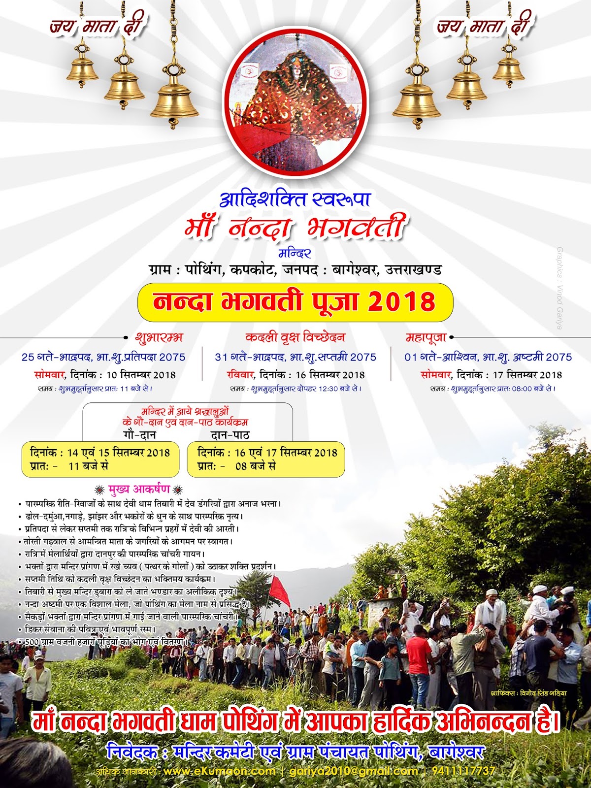 कार्यक्रम नंदा भगवती पूजा 2018 | भगवती मंदिर पोथिंग बागेश्वर। |